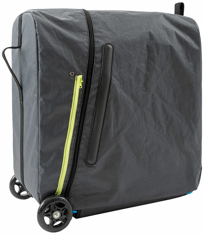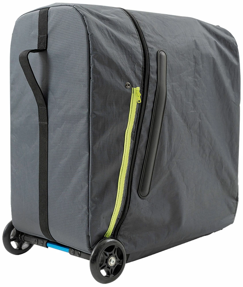 En voyage, les bicyclettes pliantes présentent le grand avantage de compter comme un bagage normal lorsqu’elles sont pliées et rangées dans un sac. Cela signifie qu’ils ne sont pas soumis aux autres réglementations relatives au transport des bicyclettes dans les bus, les trains ou les avions et qu’ils n’encourent donc pas de frais supplémentaires pour le transport. Le sac de transport léger de 4 kg de B&W est équipé d’un cadre en aluminium qui protège l’intérieur et assure un transport stable grâce à deux roues faciles à rouler.