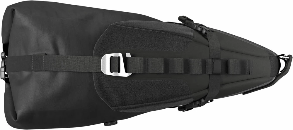 Le Drybag peut être facilement compressé pour minimiser le volume grâce à son mécanisme de libération de la valve d’air et enroulé pour réduire sa taille lorsque l’on a besoin de moins d’espace. La guirlande permet de fixer des sacs modulaires, tandis qu’une boucle permet de monter un feu arrière.