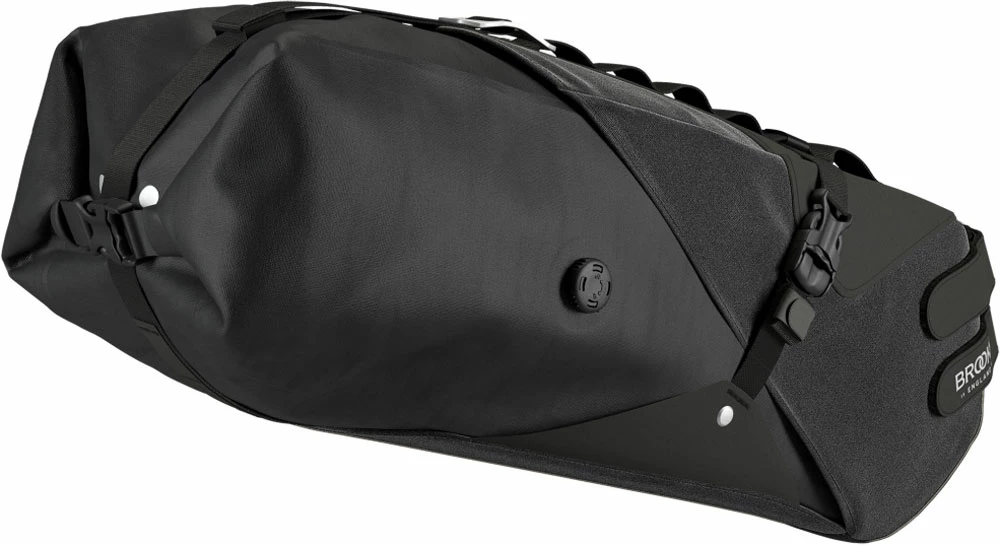 Le sac de selle Scape de Brooks est un sac de vélo qui se compose de deux éléments distincts : un étui et un dry bag amovible 100 % étanche. L’étui est fabriqué à partir de matériaux robustes et durables, le fond de l’étui protège le sac intérieur du contact avec la roue arrière.
