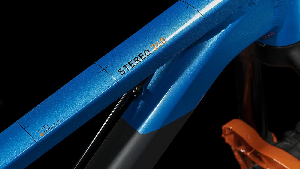 Loads of experience goes into every CUBE frame – and the Stereo 240 Pro is no exception. The wheels may be smaller than other full-suspension bikes, but the attention to detail is just as thorough. CUBE has the same kind of butted-aluminium tubes as the full-size bikes, and apply the same suspension kinematics. There’s a replaceable gear hanger so that the inevitable crashes don’t result in an expensive frame repair, and it’s all passed the strict in-house safety tests with flying colours – so you know it’s not just a fun ride, but a safe one too.