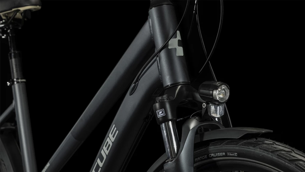 A suspension fork and suspension seatpost help smooth out rough roads. And full-length mudguards, a neatly integrated luggage carrier, built-in dynamo lights and a handy kickstand mean you’ve everything you need for short trips across town and longer forays into the countryside.