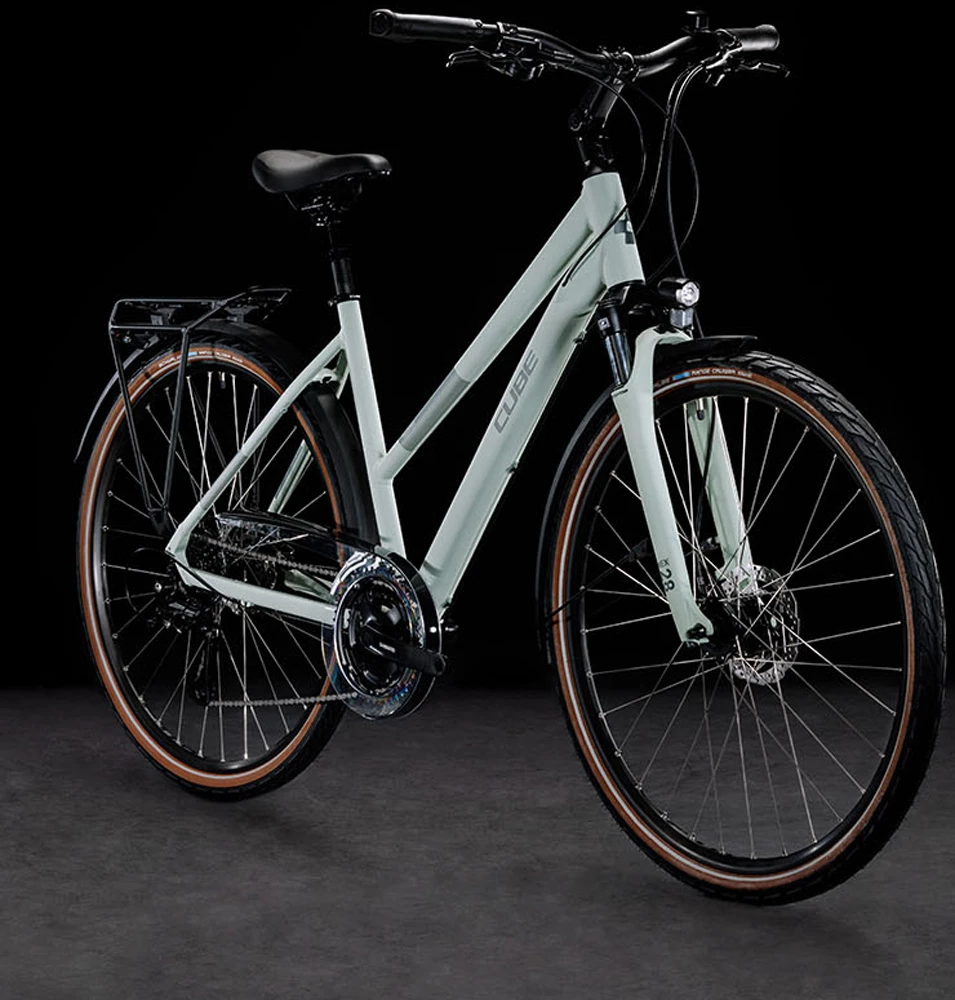 The Cube Touring ONE’s full equipment package and comfortable design is all you need to broaden your riding horizons. Easy-to-use 3×8 Shimano gears make light work of any route by putting gear selection literally at your fingertips. Powerful disc brakes work better than standard brakes in the wet, for safer stopping.