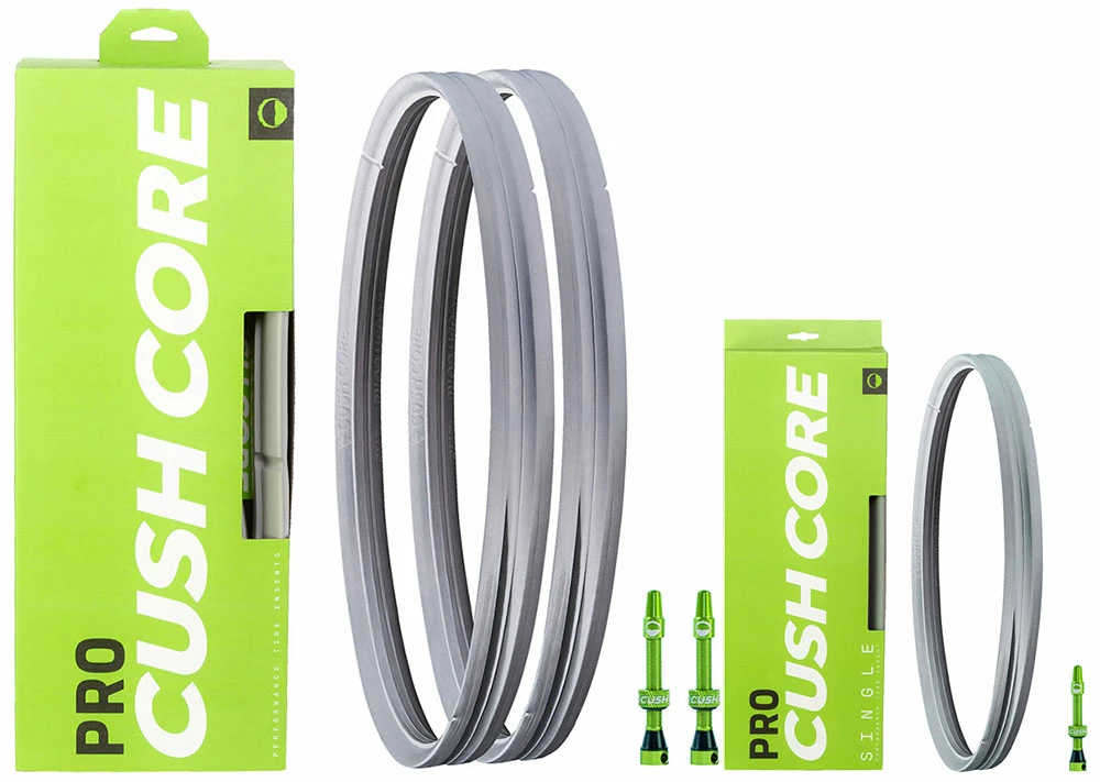 Le CushCore est un insert en mousse qui est installé dans un pneu de vélo de montagne. Il divise le volume intérieur du pneu en deux, avec l’air sous la bande de roulement et l’insert CushCore près de la jante. Ce système est conçu pour être utilisé avec des jantes et des pneus de vélo de montagne compatibles avec le tubeless ou convertis en tubeless.