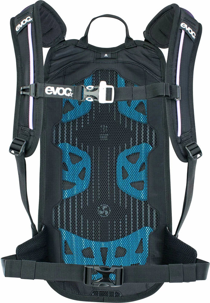 L’exigence ici est de transférer les charges au centre de gravité du corps de telle sorte qu’elles deviennent neutres, tout en minimisant les zones de contact avec le dos. EVOC résout cette contradiction grâce à un composant dorsal où tous les éléments d’aération, tels que les grands canaux d’aération et les coussins EVA spécialement rainurés et perforés derrière le matériau en filet, ont été pratiquement déplacés vers l’intérieur. Ainsi, le sac à dos s’adapte parfaitement au dos et offre simultanément une ventilation dorsale optimisée.