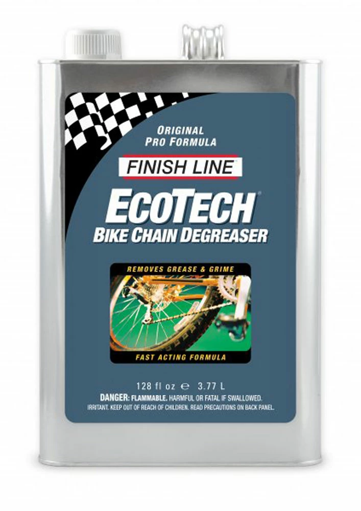 Finish Line EcoTech 2 est un nettoyant biodégradable à utiliser sur l’ensemble du vélo. Cette solution dégraissante élimine les dépôts importants de graisse et de saleté sans attaquer les pièces en caoutchouc et en plastique.