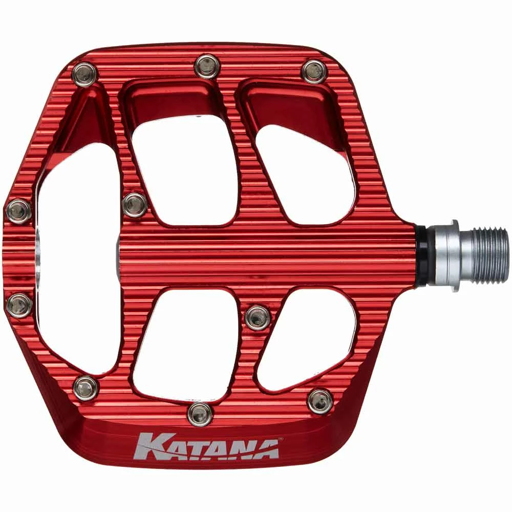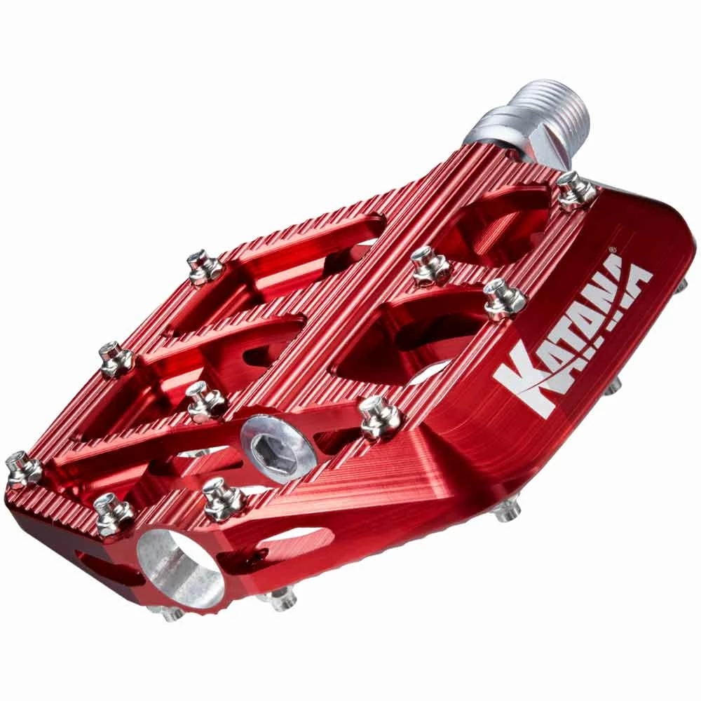 Les pédales Katana Attack Mode Flat, légères et robustes, utilisent un châssis en aluminium usiné et offrent un contact optimal avec ton vélo grâce à leurs 10 pins Evo par côté de pédale et à leur surface de contact légèrement concave. Le corps de pédale CNC et l’axe en CrMo traité garantissent, en combinaison avec les bushings industriels autolubrifiants de LSL, une longue durée de vie dans tous les domaines d’utilisation, même dans les conditions les plus difficiles. Règle le mode Attack !