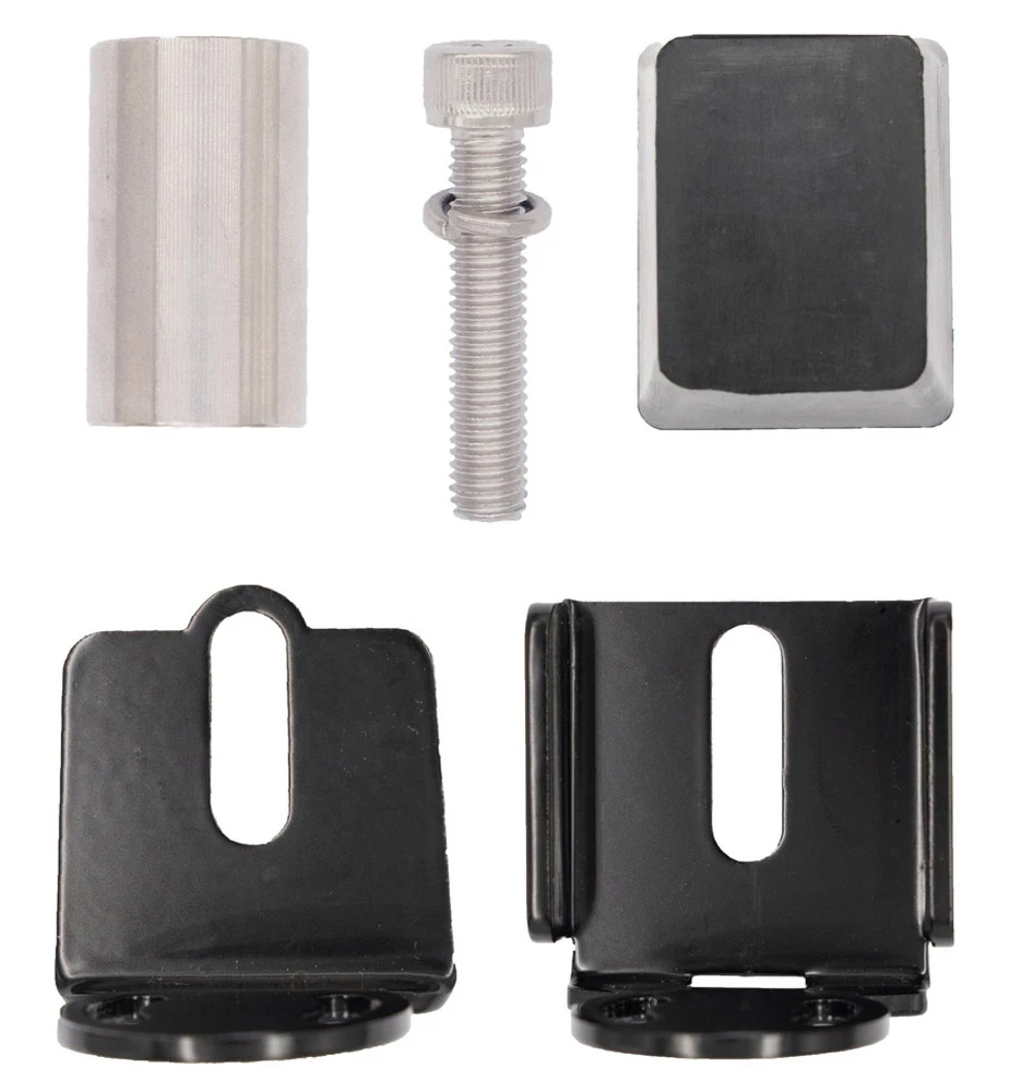 - Toutes les pièces nécessaires au montage de la tige de selle, comme les brides, la butée en caoutchouc, la rondelle et le boulon de tige de selle