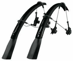 Le système de fixation simple à deux articulations Quick-Release s’adapte également aux fourches aéro et aux freins à disque. Les garde-boue peuvent être parfaitement adaptés au rayon des pneus en réglant la longueur des entretoises. Le spoiler super léger et extra-long offre une protection supplémentaire contre les projections.