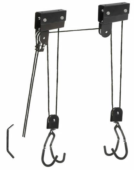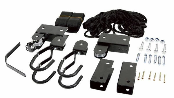 Le porte-vélo E-Bike Lift n’est pas seulement adapté aux vélos. Grâce à deux sangles supplémentaires, les coffres de toit, les kayaks et autres objets trouvent également leur place dans les hauteurs aériennes. La construction de support renforcée, les crochets stables et caoutchoutés avec articulations intégrées, ainsi que la corde de traction à fonctionnement souple avec loquet de sécurité et frein de corde assurent une manipulation facile et un stockage sûr.