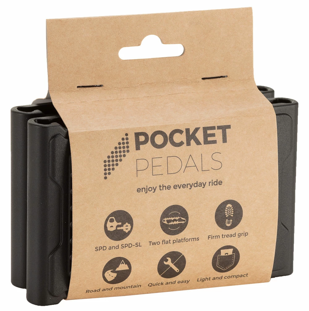 Avec les fixations pour pédales plates de Pocket Pedals, les systèmes de pédales Shimano SPD peuvent être rapidement convertis en pédales plates sans outils. Idéal pour les cyclistes qui ne veulent pas utiliser leurs chaussures de vélo Shimano compatibles pour chaque trajet. Petit, compact et se range dans n’importe quelle poche de maillot ou de pantalon. Un vrai régal pour tous les cyclistes de VTT, de trekking et de route.
