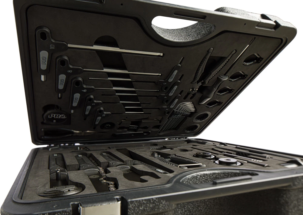 La boîte à outils Expert de PRO contient 42 outils en acier à outils robuste et offre la base d’un service professionnel sur le vélo dans toutes les situations, que ce soit dans le magasin de vélo, sur les courses ou à la maison.
