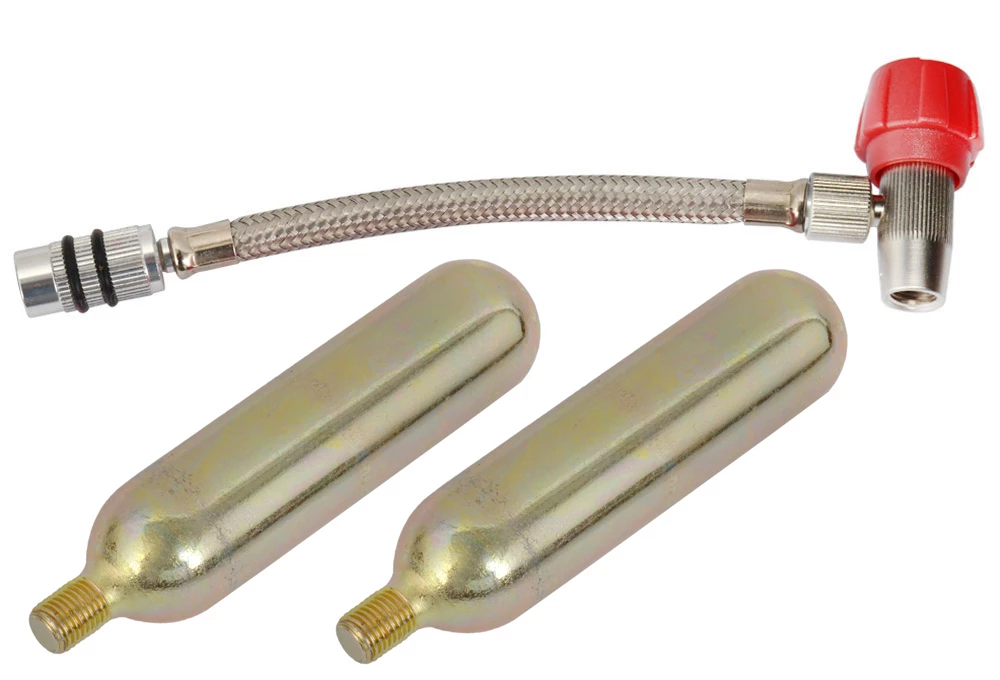 - La cartouche de 25 g remplit un pneu MTB de 2,5 26 pouces jusqu’à 2,8 bars