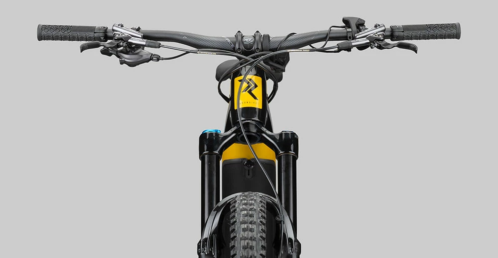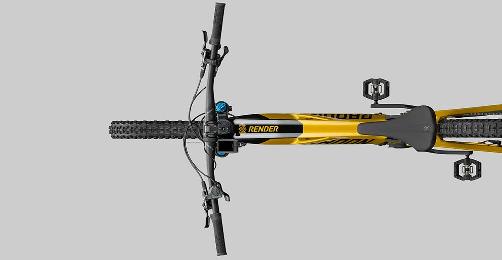 But let’s start from the beginning: The basis is the high-quality carbon frame, which looks elegant in its golden mustard colour, is very stiff thanks to its special shock linkage and also accommodates the large 625Wh battery in the down tube. An Acros Block Lock headset with a lateral stop ensures that the crown of the fork cannot hit the down tube even in wild crashes. Speaking of forks – the front of the RENDER 9.0 is equipped with a sublime Fox 36 Float Performance 3-Pos. with 160mm travel, which provides a lot of comfort at all times and also stands confidently in the suspension travel when stepped on. For the perfect balance in the chassis, the counterpart from the same company, the Float X Performance shock, damps and springs at the rear and delivers 140mm of super-sensitive travel. Shimano’s cult label XT is found everywhere in the gears and brakes, which in the bike scene stands for indestructible durability and precise function. The 1×12 shifting group comes with the large 10-51 tooth cassette, which provides you with the right gear ratio on every steep slope and also offers enough reserves on the descent so that you can pedal powerfully. The perfect companion for hairy braking manoeuvres is the XT Disc with four pistons and large discs at the front and rear, which brakes you stoically and with fine dosing and never lets you down. The wide and optimally shaped RaceFace cockpit offers you full control even in rough terrain, and if the descent is steep and your bottom has to go far back, the RADON Dropper Post, which can be conveniently lowered from the handlebars, will help you out of trouble. You don’t have to worry about wheels and tyres either and can rely on them blindly, the SUNringlé Düroc SD37 Expert come with steel axle and freewheel and are up to the forces of the motor. The Maxxis Minion DHF/DHR combination rolls well and digs into the ground like no other – with our RENDER 9.0 you are on the good side of power!