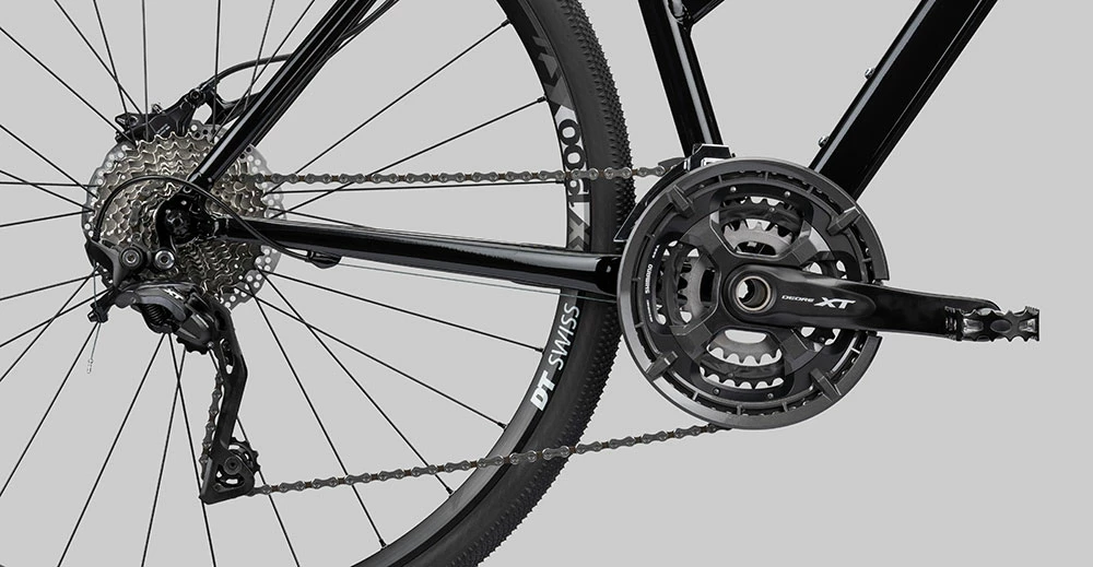 The excellent RockShox Paragon Gold at the front is one of the best cross air suspension forks and breathes away bumps and knocks just like that. With Shimano XT components, you always do everything right, which is why we gave the bike the complete drivetrain with crank, front derailleur and rear derailleur plus hydraulic XT BR-M8100 brake. You can always rely on this group both when accelerating and braking. Together with the sporty Selle Italia X3 saddle and the easy-rolling Schwalbe G-One tires, every ride is a carefree pleasure.