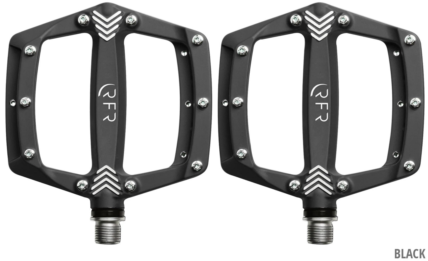 Les pédales plates RFR légères avec un profil bas, des pins interchangeables, quatre réflecteurs, des roulements industriels et un bushing LSL.
