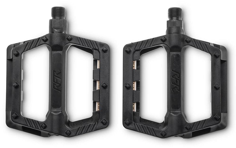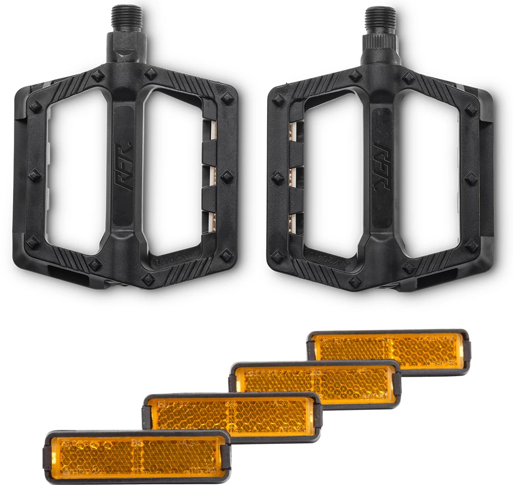 Les robustes pédales Cube RFR Flat HQP Race avec réflecteurs intégrés sont fabriquées en plastique solide et offrent une excellente adhérence grâce aux pins anti-slip intégrés.