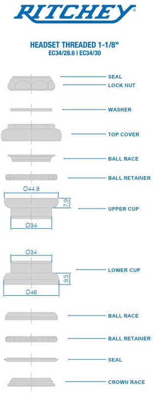 - 1 jeu de direction Ritchey Comp fileté 1 1/8″ EC34