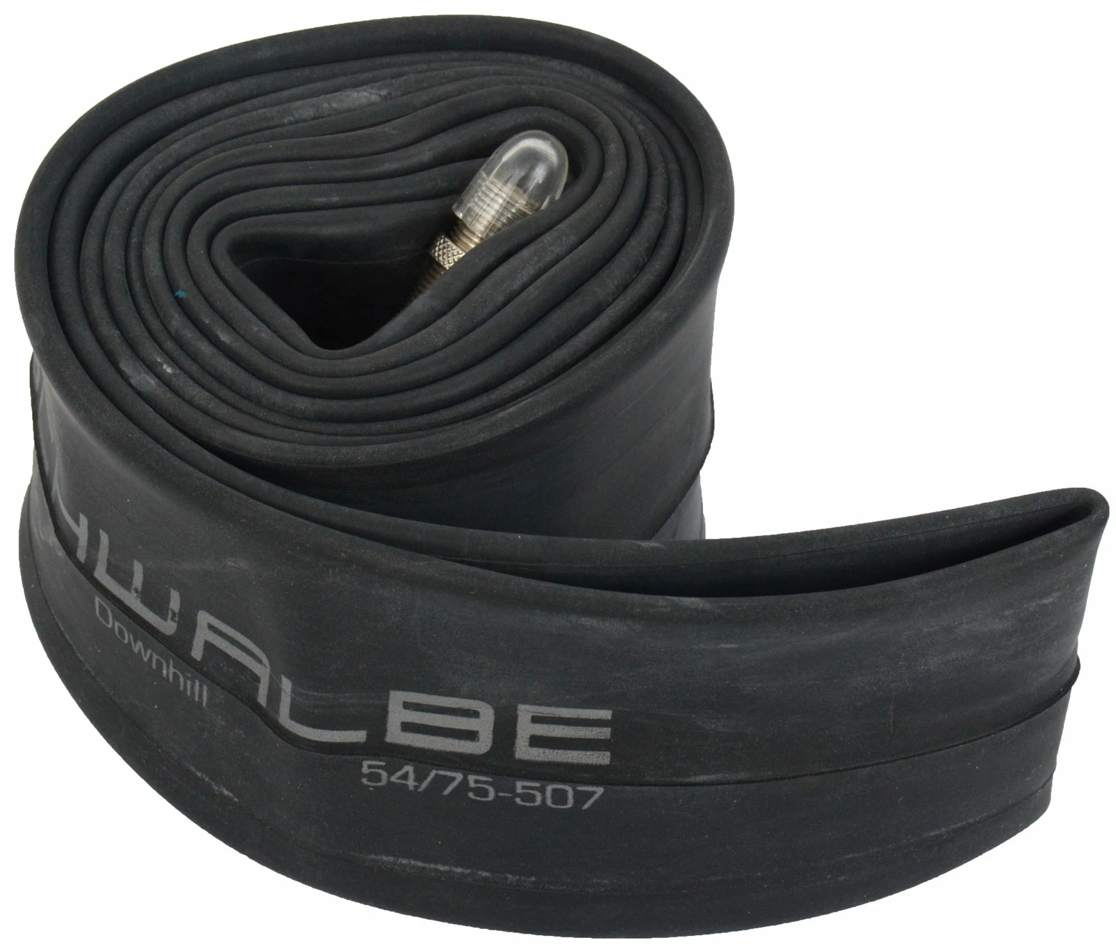 La chambre à air AV 10D de Schwalbe, équipée d’une valve Schrader, est adaptée aux vélos de descente 24″ avec des pneus d’une largeur de 2,1″ à 3″.