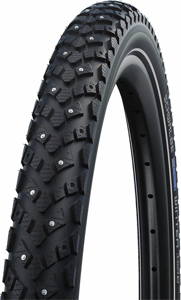 Même avec la moitié des clous, le Schwalbe Winter offre un excellent contrôle sur les surfaces glacées. Son grand frère Marathon Winter Plus ne lui est supérieur que dans les virages extrêmes. Avec sa carcasse de 50 EPI, ses bandes réfléchissantes et son système K-Guard, il offre un excellent équipement à un prix d’entrée de gamme.