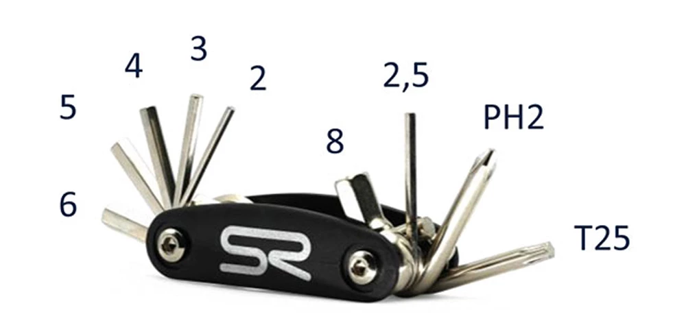 9 outils dans un boîtier en caoutchouc antichoc pour des ajustements et des réparations rapides ; se fixe directement à l’arrière de la selle grâce au système integré.
