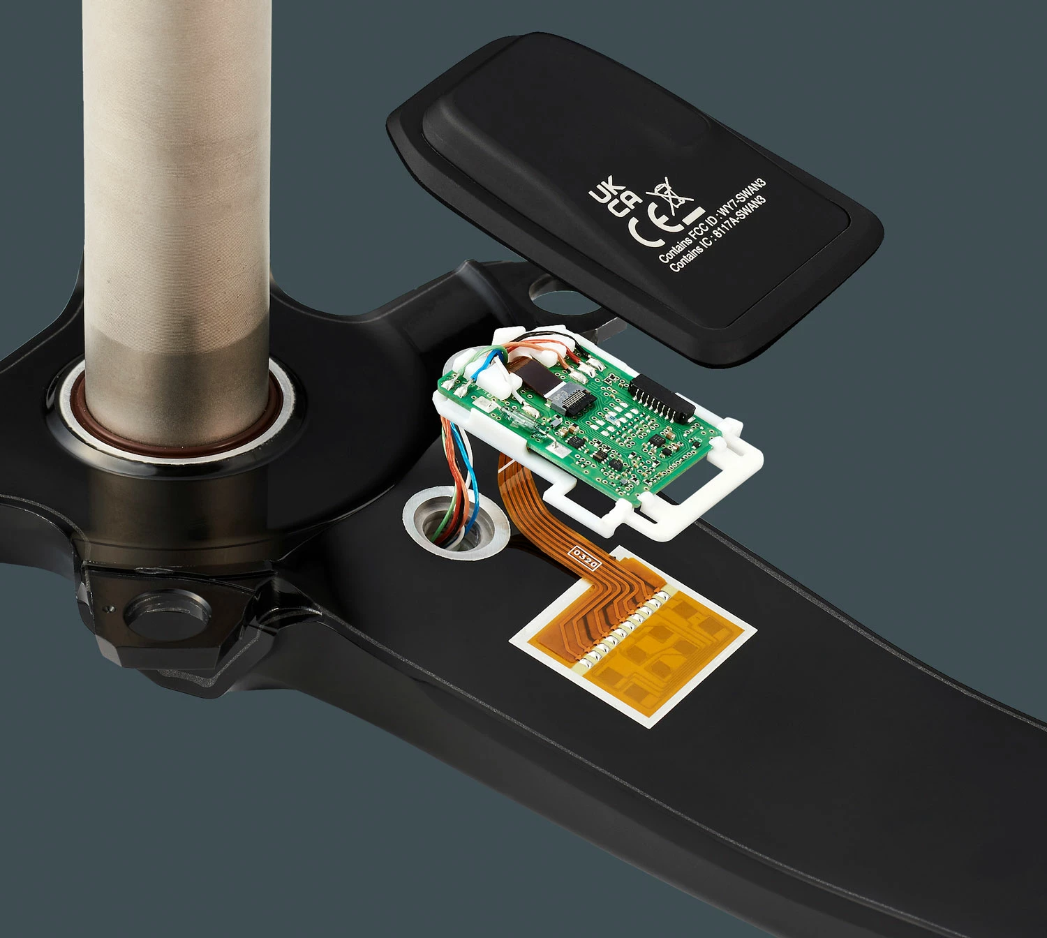 Le « cerveau » de l’appareil de mesure de la puissance se trouve à l’intérieur du corps de la manivelle d’entraînement Dura Ace (l’araignée) et les jauges de contrainte se trouvent à l’intérieur des bras de la manivelle pour mesurer la puissance des jambes gauche et droite. Le cerveau est discret et compact, offrant un système qui est l’un des plus légers et des plus propres du marché. Comme le capteur de puissance est relié à l’araignée, les plateaux de chaîne peuvent être facilement changés sans affecter la précision du capteur de puissance. La vérification du système et le téléchargement du micrologiciel peuvent également être effectués par votre téléphone intelligent ou votre tablette PC grâce à une connexion Bluetooth (E-TUBE). Une batterie rechargeable intégrée alimente l’appareil. Celle-ci peut être chargée à l’aide d’un petit adaptateur magnétique sans qu’il soit nécessaire de retirer les couvercles ou les boîtiers