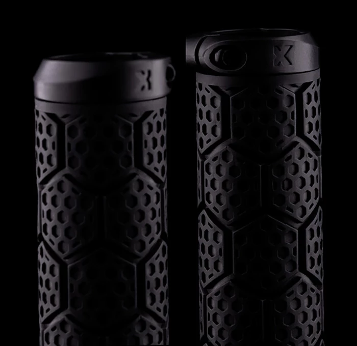 Les D-Trix CF de Sixpack Racing sont des poignées souples de grand diamètre avec des bagues de serrage en polyamide renforcé de fibres de carbone pour des performances multidisciplinaires. Il s’agit d’une évolution de la célèbre poignée à profil en nid d’abeille, qui répond aux souhaits de ceux qui préfèrent des poignées plus larges sur leurs vélos.