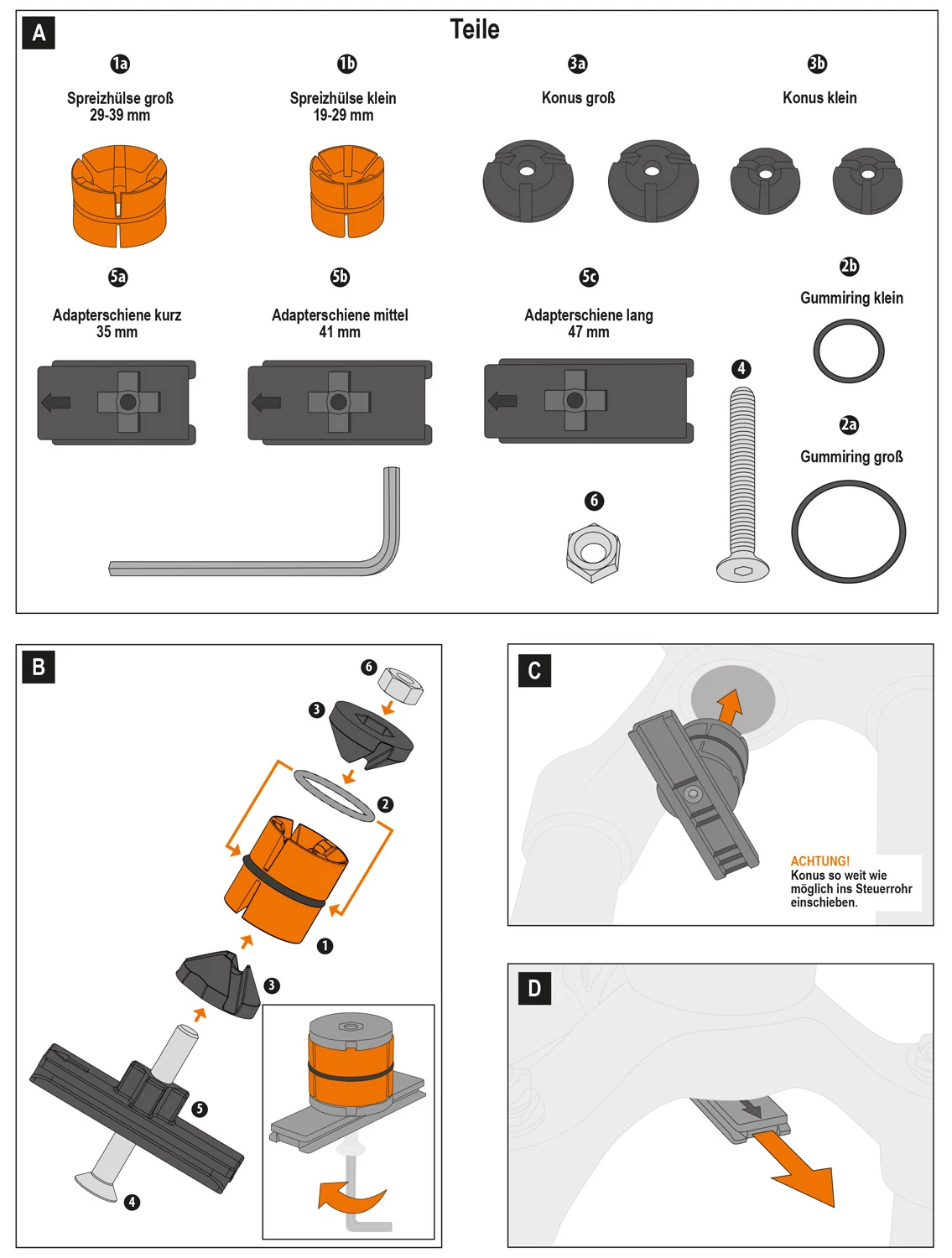 - 1 x Kit de montage 2.0 (cône 1 19 – 29 mm & cône 2 29 – 39 mm)
