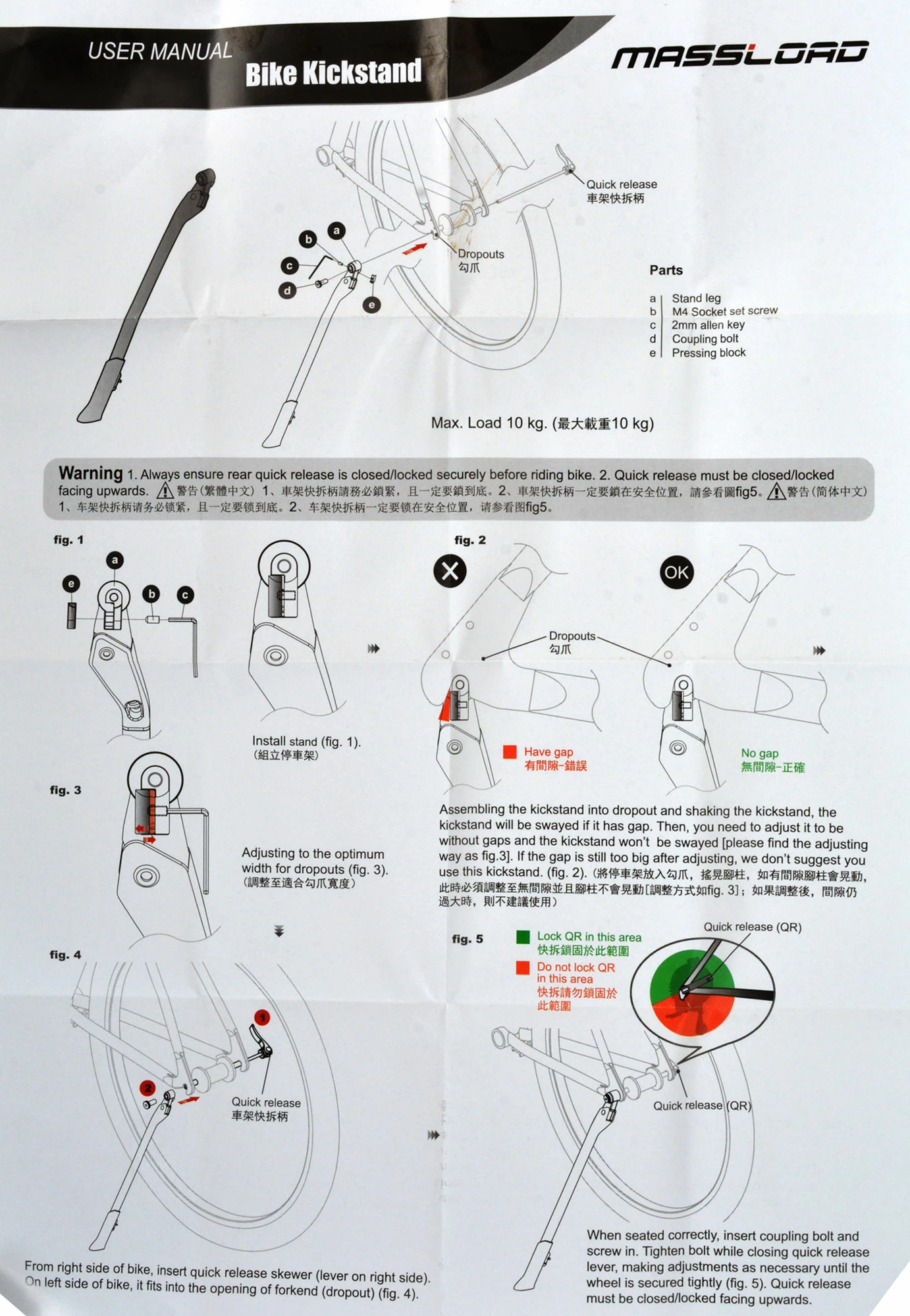 - Montage sur l’attache rapide (ouvert verticalement, QR)