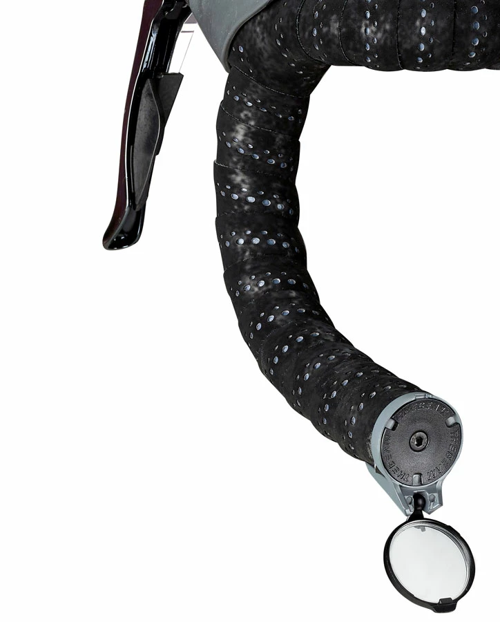 Le miroir CORKY de THE BEAM est optimisé pour les guidons de vélo de route et peut être facilement déplié et replié.