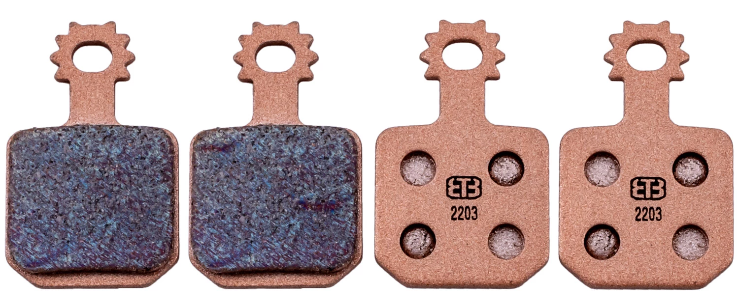 - Sintered : Bonnes caractéristiques de freinage à chaud ; la force de freinage augmente rapidement ; idéal pour une utilisation en freeride/descente ; freinage rapide et puissant ; puissant