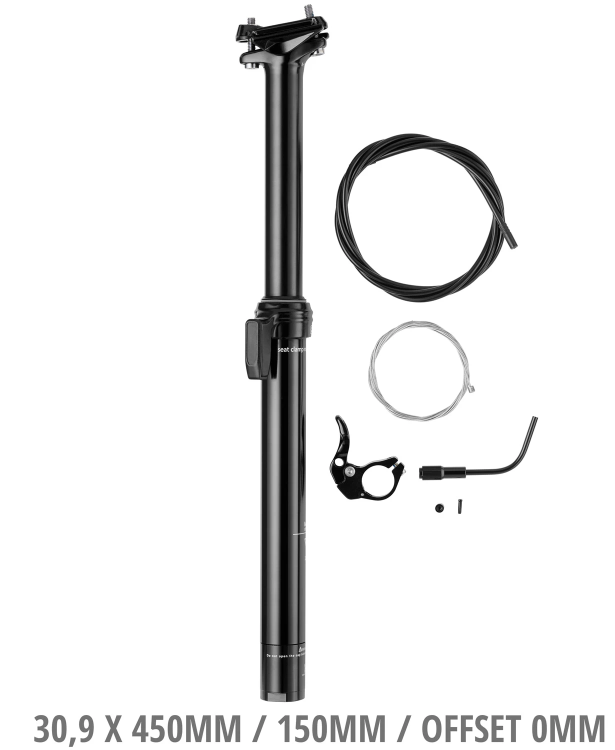 La tige de selle TRIPLE EIGHT Dropper Post PRO « Outside », réglable en continu, est particulièrement adaptée aux cadres sans routage interne et la plage de réglage peut être actionnée via la télécommande du cockpit. La télécommande permet de garder les deux mains sur le guidon et offre également une sécurité de conduite maximale. Le poids maximal recommandé est de 110 kg.