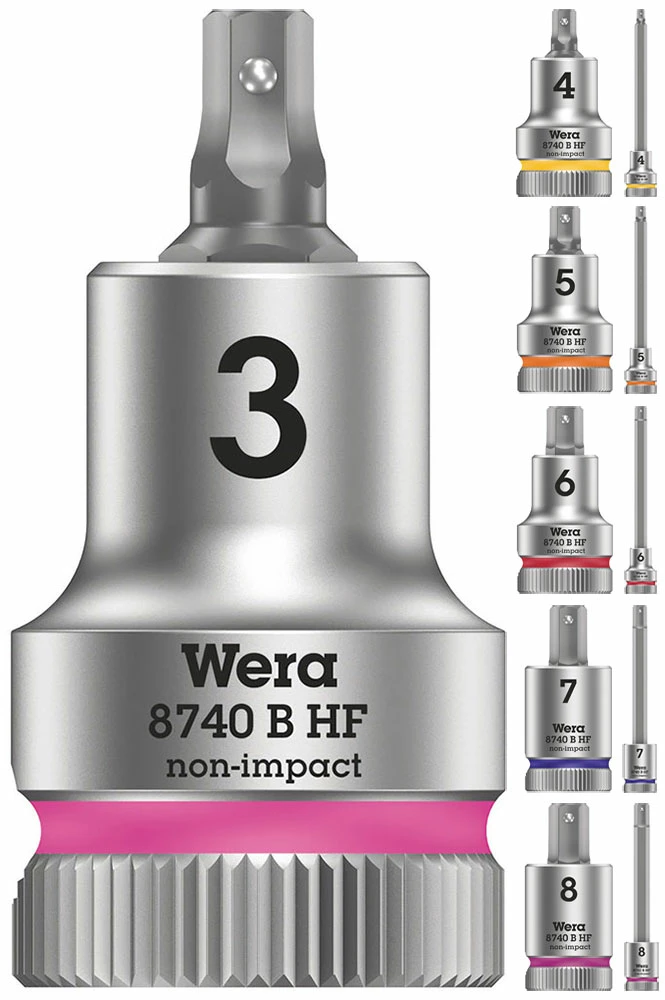 Caractéristiques – Wera 8740 B HF Douille-embout Zyklop pour vis à six pans creux, à emmanchement 3/8″ avec fonction de retenue